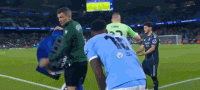 第45+3分钟,鲁本-迪亚斯踢倒居莱尔,引发小规模冲突