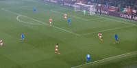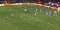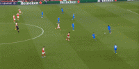 343体系和比较保守的客场应对思路,使得他们在进攻和有球阶段,主要依靠中锋位置的接球和策应能力,19岁的小孩科法内在这方面确实有些潜力,本场部分回合表现不错: