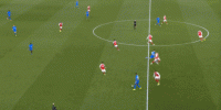 而且不仅是在前场和进攻的时候,在中后场和推进阶段,阿森纳也会因为人员使用上的问题而出现一些滞涩和生硬的情况: