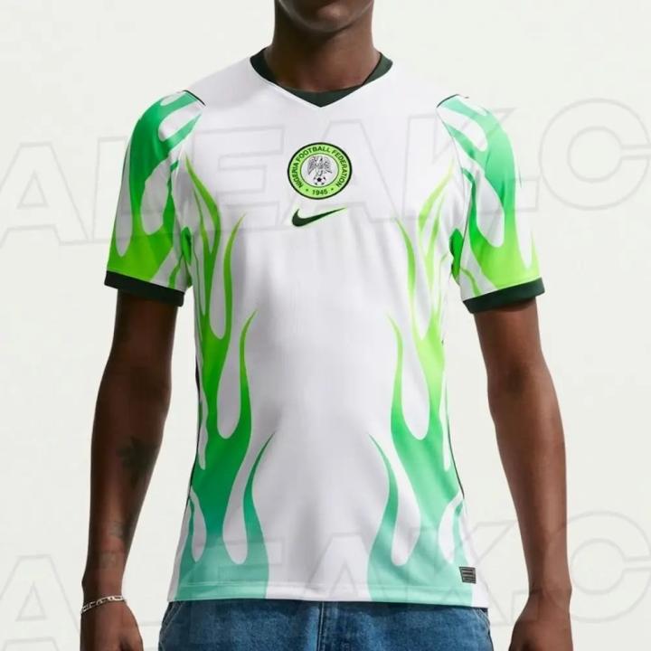 日前,著名足球装备网站Footy Headlines曝光了尼日利亚国家队的2026年客场球衣最终版本谍照,该球衣以白色为底色,搭配不同深浅的绿色火焰图案,设计大胆,反响热烈。