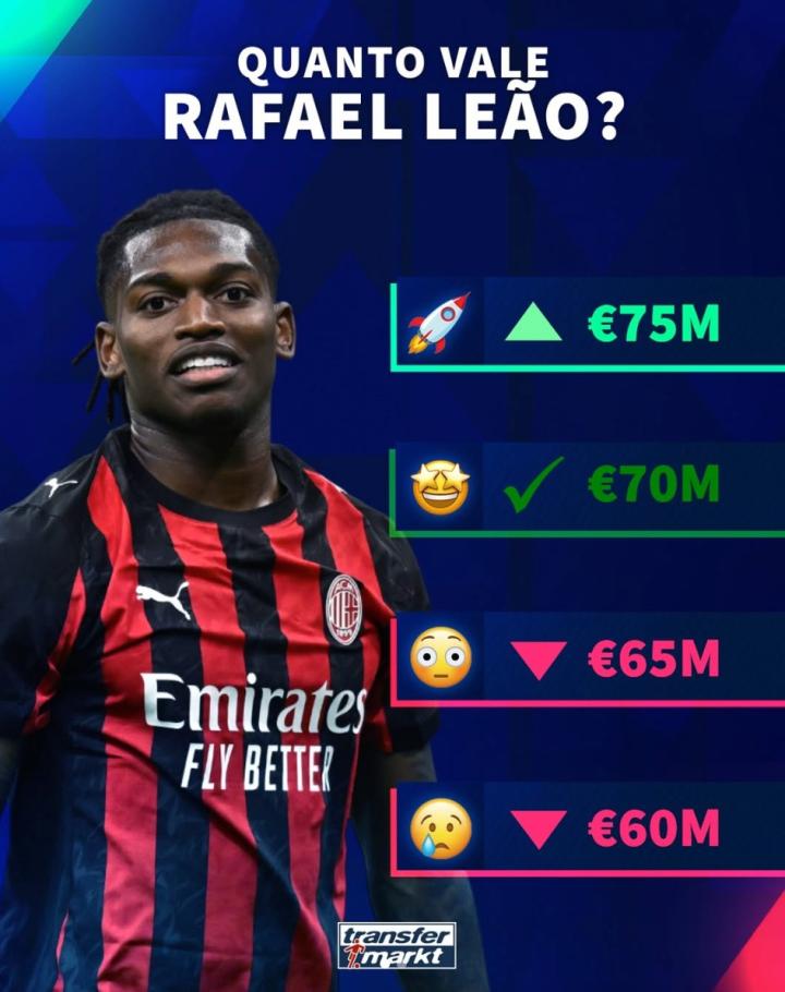 扫描下载懂球帝首页>动态> 德转预热莱奥身价更新:最高涨至7500万欧元,最低跌至6000万