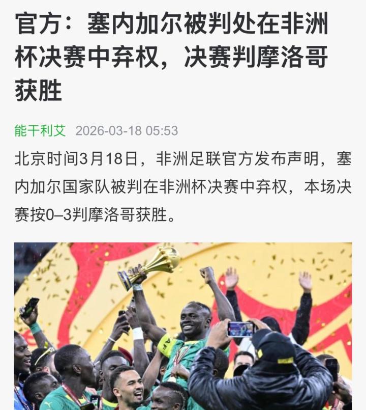 03-18 10:19塞内加尔足协官方:0-3的判决不可接受,将向CAS提起上诉