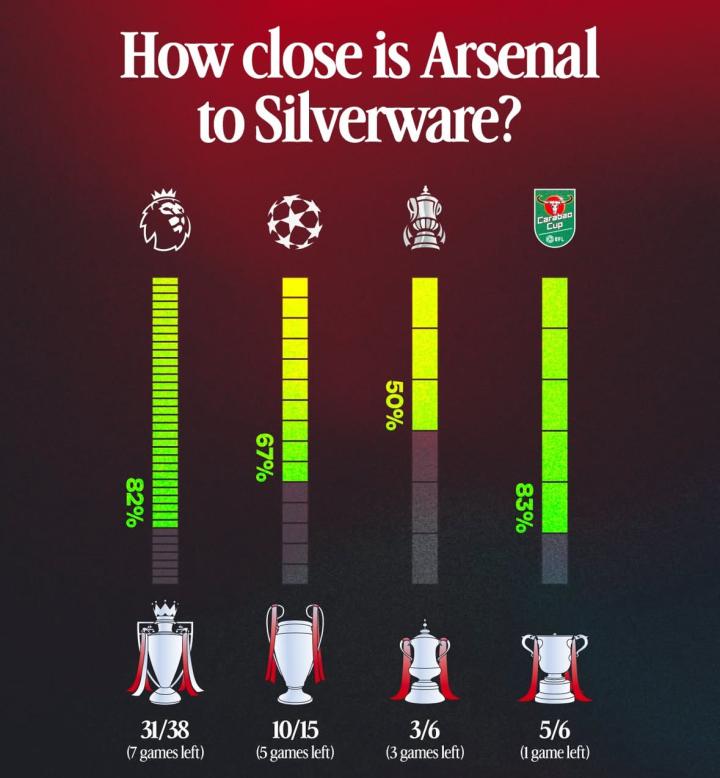 扫描下载懂球帝首页>动态> 懂球号> 本赛季目前为止,阿森纳仍然保持四线争冠的可能!