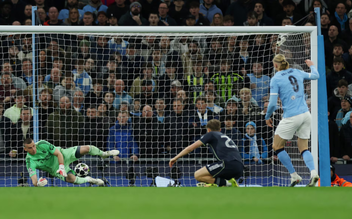 虽然只踢了半场,但库尔图瓦再次展现了“门神”本色。短短45分钟,他完成了四次教科书级的扑救:第2分钟挡出切尔基的射门,1分钟后化解罗德里威胁,随后又在第23分钟(维尼修斯进球前)和第26分钟两次扑出哈兰德的必进球。又是这种让对手绝望的“日常操作”。