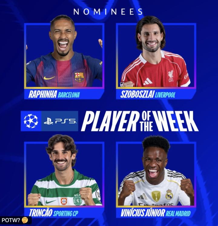扫描下载懂球帝首页>动态> 本周欧冠最佳球员候选:拉菲尼亚、索博、特林康、维尼修斯