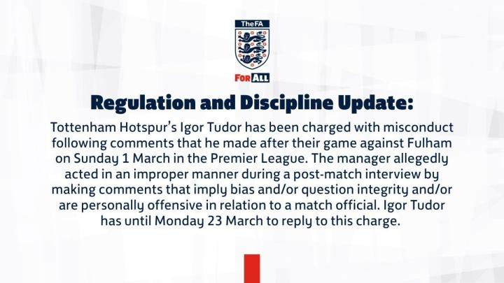 扫描下载懂球帝首页>动态> 因对阵富勒姆赛后发表不当言论,热刺主帅图多尔被英足总指控