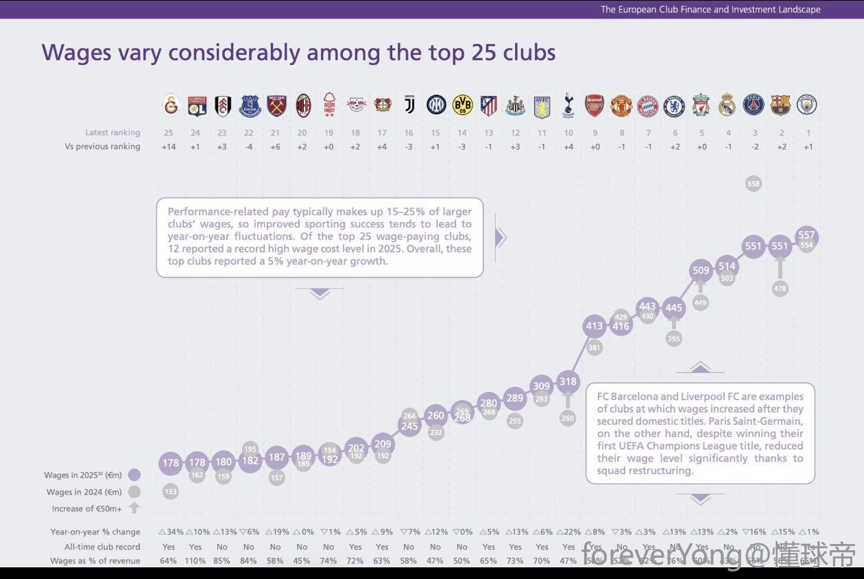 transfermarket的这个应该是根据那些曝出来的工资,欧足联的这个是根据每个俱乐部的财报