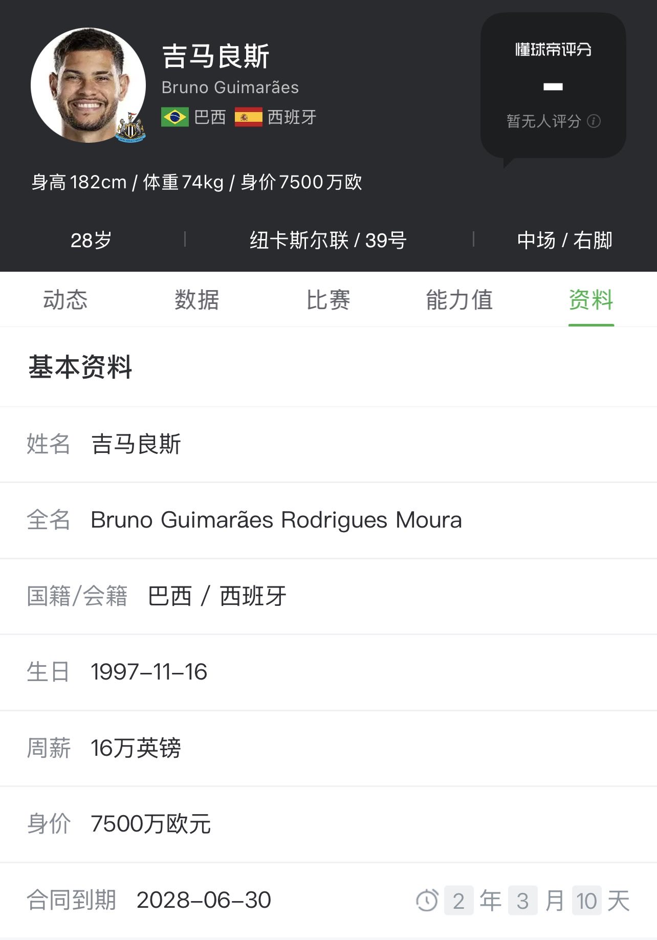 “除此之外,关于布鲁诺-吉马良斯价值1亿英镑的解约金条款,根据我的消息,该条款只在2024年夏天才有效,现在这个条款早就已经失效了。所以现在如果想签下他的话,就必须通过谈判才能实现。显然,纽卡斯尔联对价格有自己的看法,而其他俱乐部也会有自己的观点,所以让我们会看看接下来会发生什么吧。”