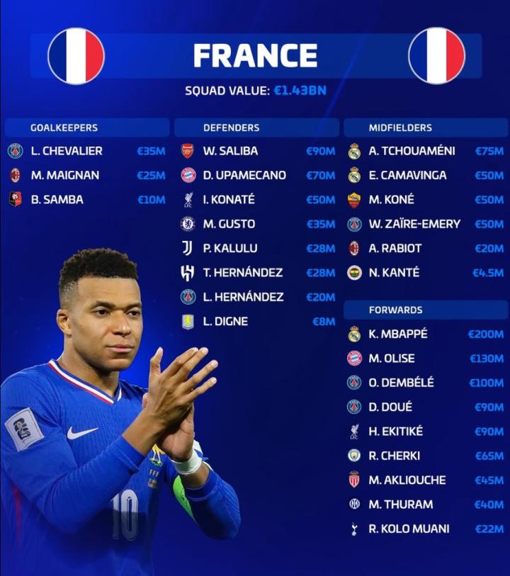 扫描下载懂球帝首页>动态> 新一期法国队身价榜:姆巴佩、奥利塞前2,26人总身价14.3亿