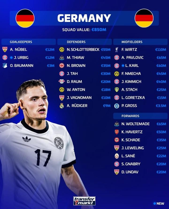 扫描下载懂球帝首页>动态> 新一期德国队身价榜:维尔茨1.1亿第1,沃尔特马德6500万第2