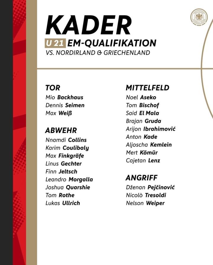 扫描下载懂球帝首页>动态> 德国U21新一期大名单:比朔夫、赛义德-马拉、格鲁达在列