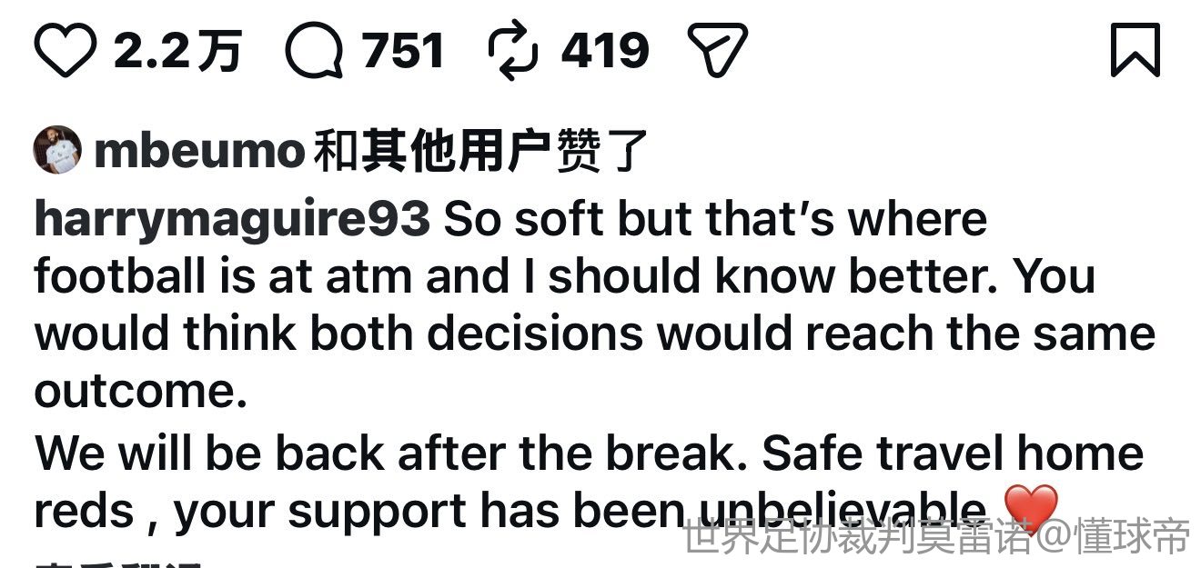 03-21 05:39马奎尔社媒谈裁判判罚:现在的足球就是这样,我本该更清楚的