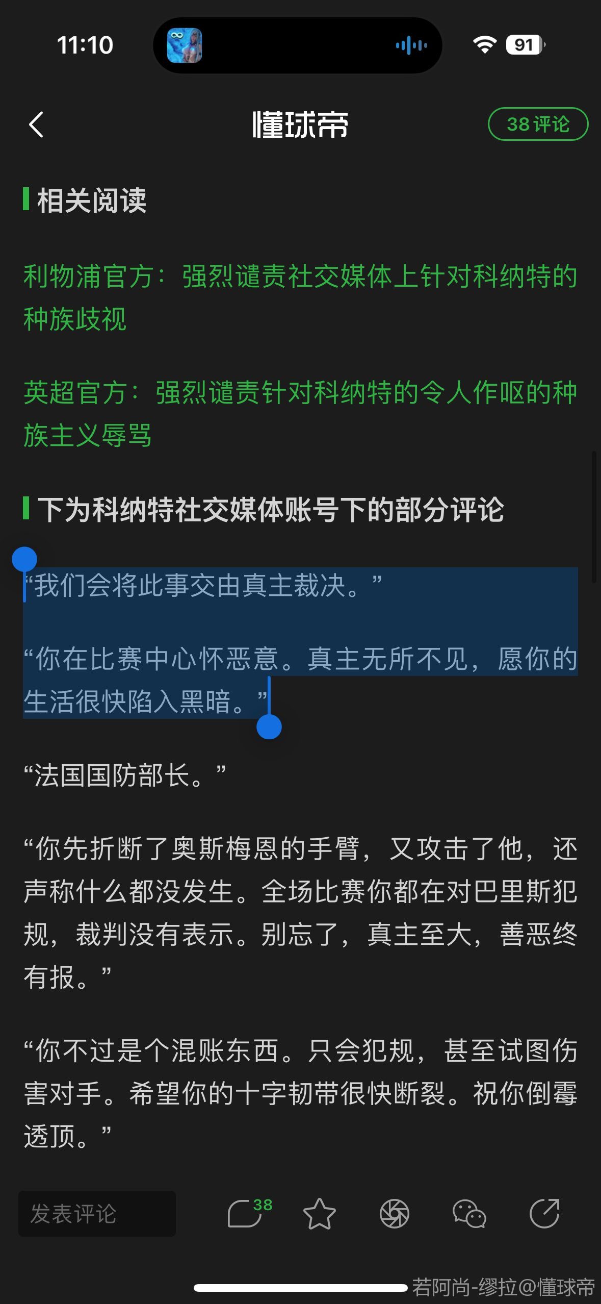 英超官方:强烈谴责针对科纳特的令人作呕的种族主义辱骂