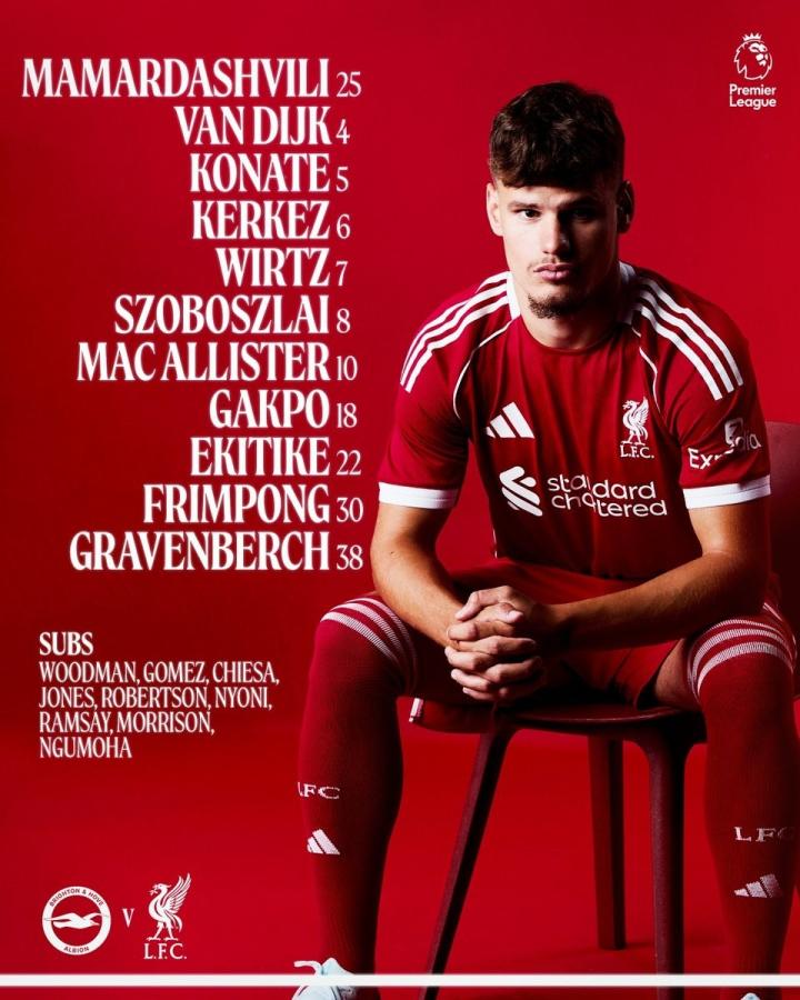 扫描下载懂球帝首页>动态> 利物浦客战布莱顿:加克波、埃基蒂克、维尔茨首发,萨拉赫缺阵
