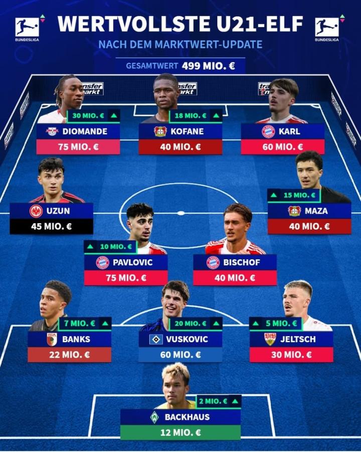 扫描下载懂球帝首页>动态> 德甲最贵U21阵容:迪奥曼德、帕夫洛维奇、卡尔、马扎在列