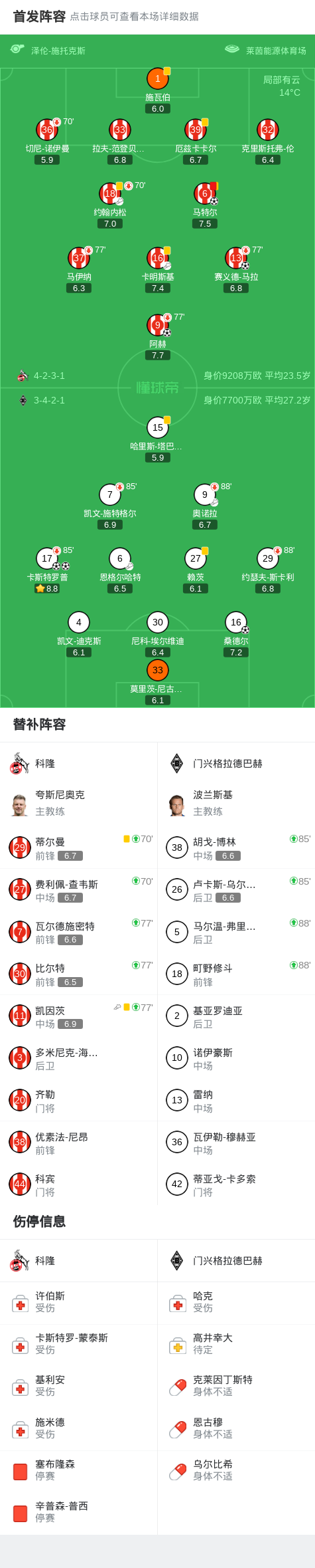 扫描下载懂球帝首页>动态> 科隆3-3门兴格拉德巴赫,卡斯特罗普破门,马特尔救主