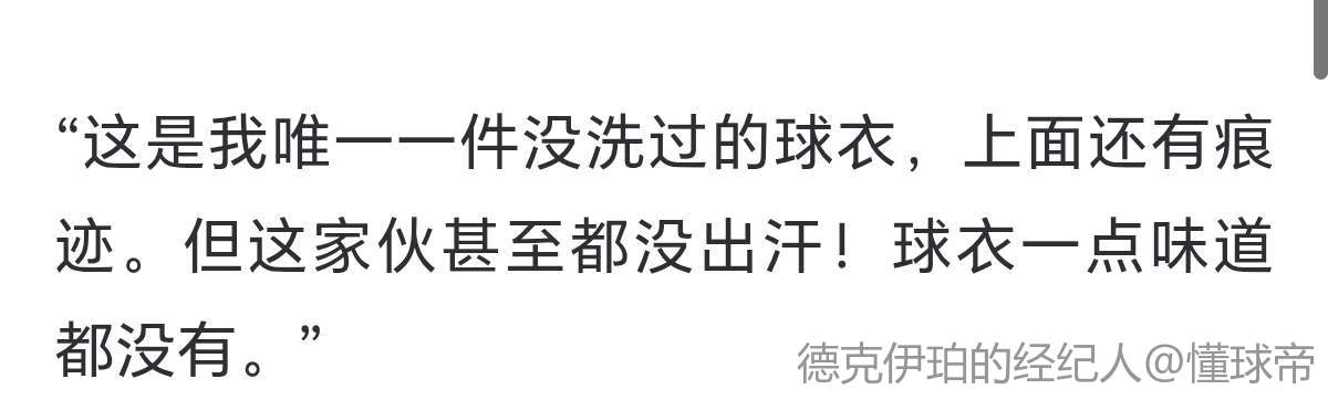 “这是我唯一一件没洗过的球衣,上面还有痕迹。但这家伙甚至都没出汗!球衣一点味道都没有。”