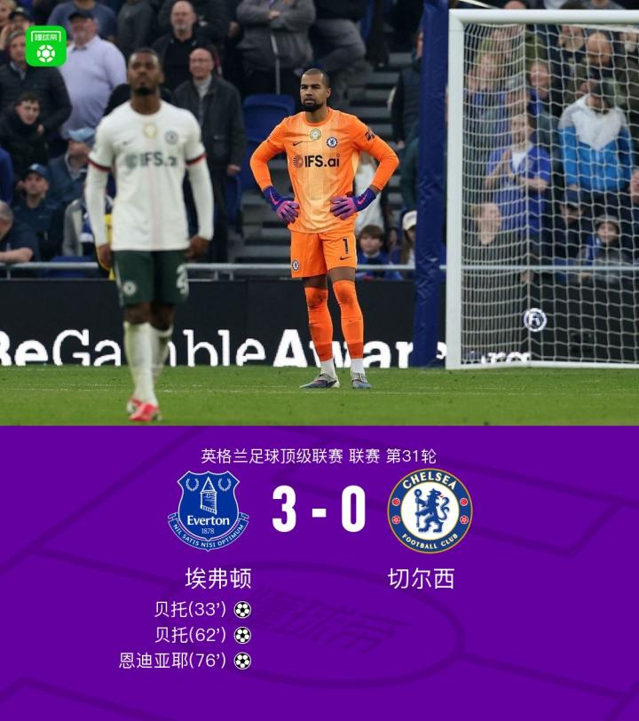 03-22 03:543-0完胜,埃弗顿迎1987年以来面对切尔西最大赢球比分