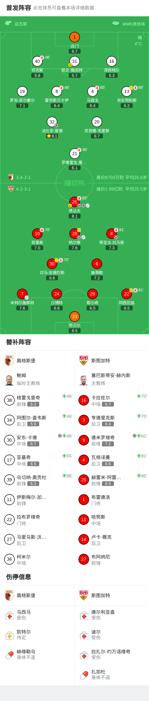 第83分钟,斯图加特球员昂达夫助攻德米罗维奇打入一球。