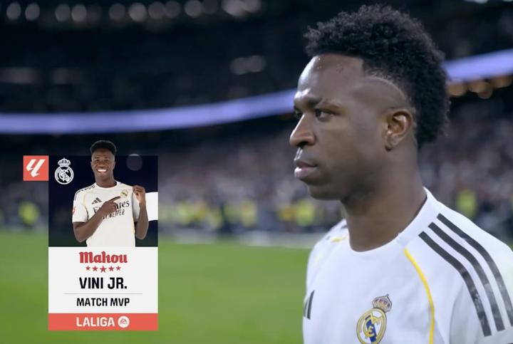 扫描下载懂球帝首页>动态> 梅开二度,维尼修斯当选马德里德比全场最佳球员