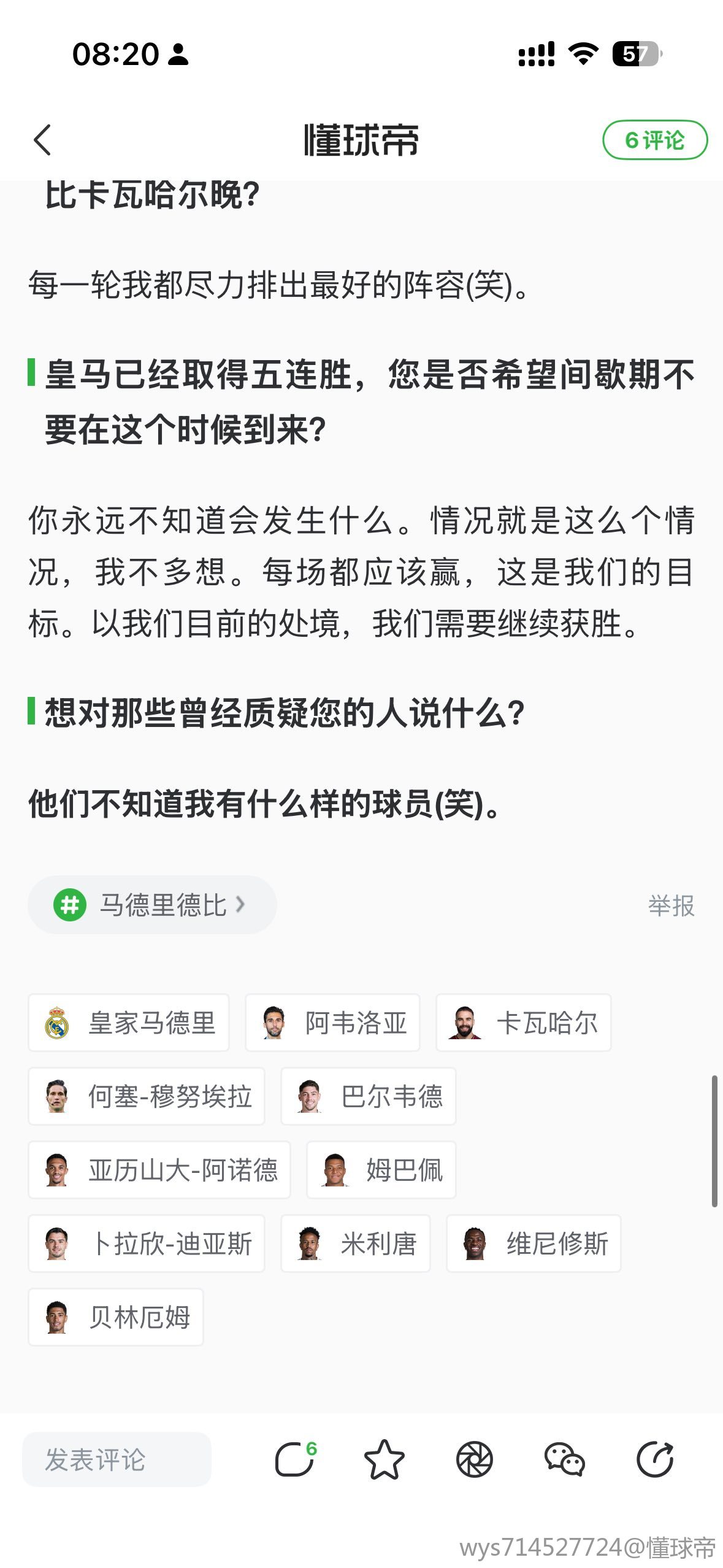 皇马已经取得五连胜,您是否希望间歇期不要在这个时候到来?