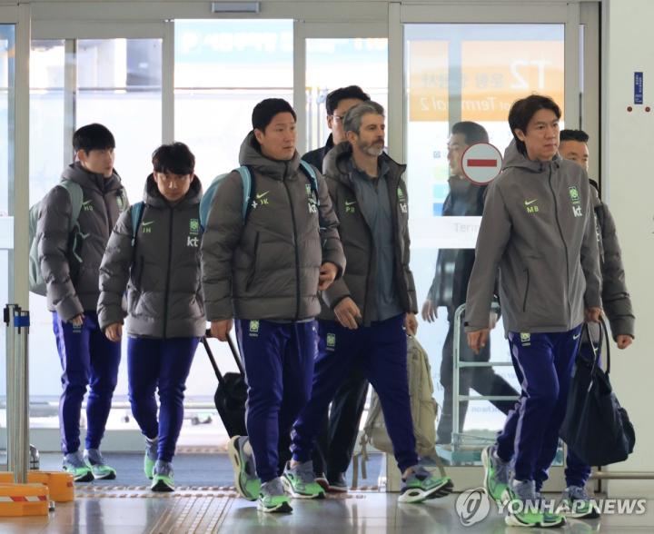 随着周末K联赛的落幕,洪明甫正式集结本土球员,启程前往伦敦,开启世界杯前的欧洲备战征程。3月23日上午,韩国国家队主教练洪明甫率教练组现身仁川国际机场,同行的是刚刚结束联赛征战的四名本土联赛球员:蔚山门将赵贤祐、全北门将宋范根、中场金镇圭,以及大田边后卫金纹焕以及效力于欧洲及亚洲联赛的球员们,在欧洲效力的球员则将直接前往伦敦与球队会合。
