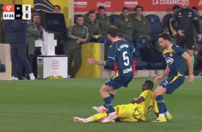 比利亚雷亚尔2-0的进攻源于盖耶对卡莱罗的一次明显放倒,但主裁判和VAR均未发现。