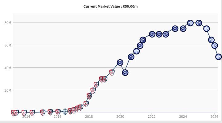 扫描下载懂球帝首页>动态> 巴雷拉德转身价经历四连跌,从巅峰8000万欧跌至5000万