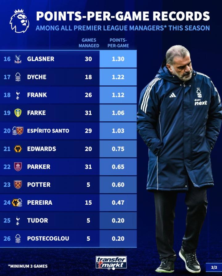 扫描下载懂球帝首页>动态> 本赛季英超主帅场均积分:卡里克2.3分第1,图多尔、澳波垫底