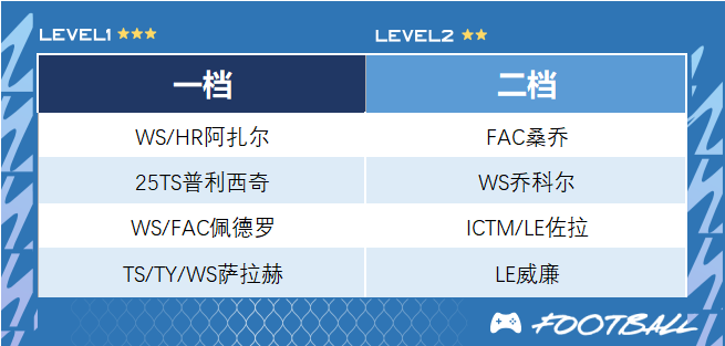 阿扎尔是目前切尔西套最适配的双五脚边锋,他的WS赛季卡爆发力突出,能够依靠带球节奏连续完成变向突破,而且他的体重在边路里算是相对偏敦实的,能够在对抗中完成高质量处理球。普利西奇和佩德罗都是体重较轻的灵巧型边锋,相对来说,佩德罗在切尔西现实生涯里的表现更突出,所以大部分车套玩家会使用佩刀,他在游戏里是最极致的小快灵类型,能够依靠连续的游龙来突破禁区,完成丝滑过人并送出威胁传球,禁区外的搓射也相当有准头。如果喜欢左脚将,那么26TY萨拉赫在近期放卡后可以考虑,这张萨拉赫是唯一的金偷猎者特性,在禁区内的跑位更加灵动,射门稳定性高,而且对抗能力在车套边锋里也是较不错的。