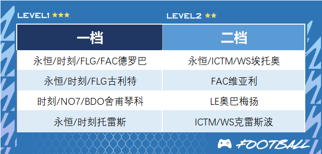 切尔西套的中锋位置选择非常丰富,除了无需多言的开服神兽古利特外,旗帜性队魂德罗巴无疑是最受欢迎的那位,尤其是在当前游戏版本,传中头球的威胁性远高于其他方式,除了永恒和时刻之外,最佳的德罗巴无疑是绿传FLG赛季,绿传德罗巴的手感要比其他普通赛季更丝滑,而且也是双五脚,除了没有金特性外一切完美,头球压顶能力炸裂。此外,舍甫琴科、托雷斯也都是跑位和灵活型前锋,不过他们都是时刻卡表现要远胜于常规赛季卡,前者的带球手感更柔和,后者在单刀跑位时更难被干扰,他们在禁区内的终结能力都是第一梯队的。