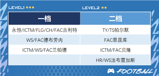 总结:作为游戏里的老牌强队套,“蓝军”切尔西队套一直以来都以强势的中锋上限和中场配置而闻名,在高段位排位赛里的出场率也很高。当然,随着赛季卡的迭代更新,许多球员都有了新的替代赛季,比如阿扎尔、吕迪格等车套的绝对主力。总之,切尔西套依然是一个值得长期组建,且整体性价比极高的选择,值得推荐!