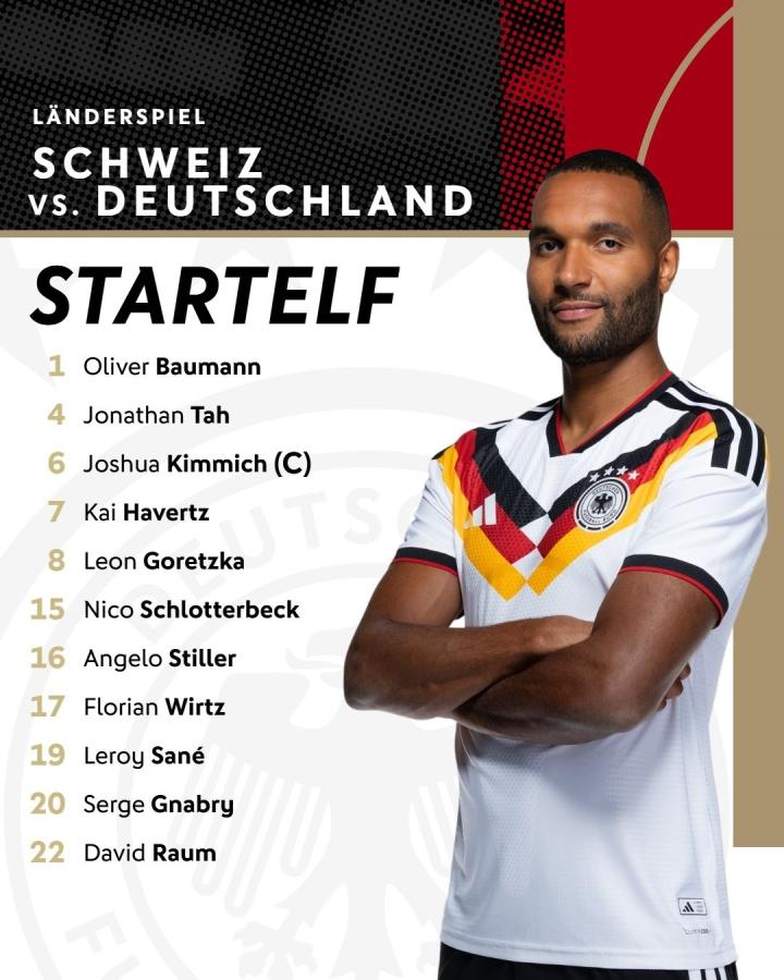 扫描下载懂球帝首页>动态> 德国vs瑞士:哈弗茨搭档维尔茨,格纳布里、萨内出战