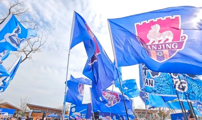出征仪式现场,当队旗交到南京队队长手中,象征着拼搏与胜利的队旗迎风舒展,队歌《金陵战歌》响起,现场身着蓝色队服的球迷一同应和,形成一片蓝色的海洋,呐喊声与歌声交织,成为动人的出征旋律。