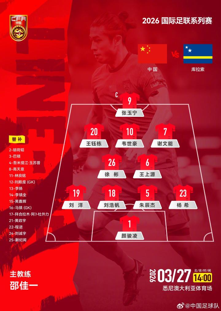 03-27 13:46国足首发平均年龄约26.2岁,比库拉索年轻约3.6岁