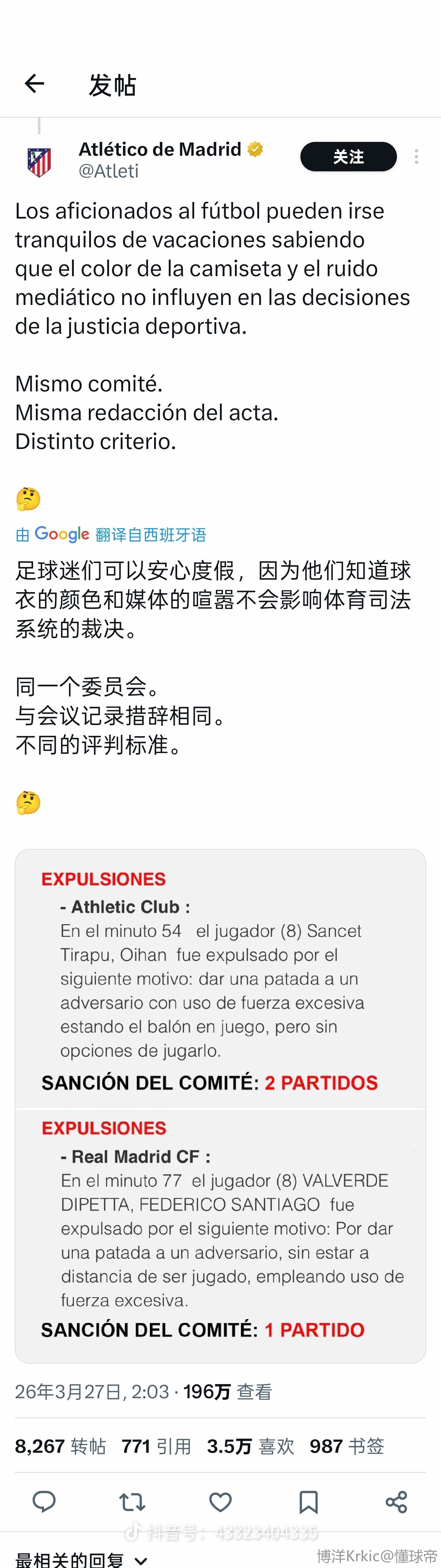 拉菲尼亚剪刀脚都判不了这么重,按照这种判罚尺度,马竞得场均罚下一个