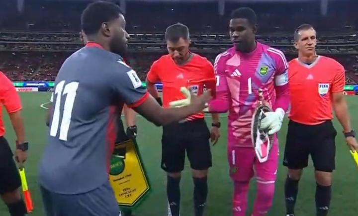 扫描下载懂球帝首页>动态> 新喀里多尼亚队赛前携带家乡礼物与牙买加交换,牙买加队长颇感困惑