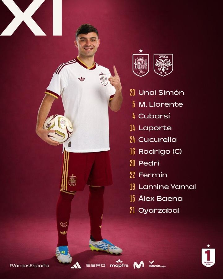 扫描下载懂球帝首页>动态> 西班牙vs塞尔维亚:亚马尔领衔,罗德里、佩德里出战