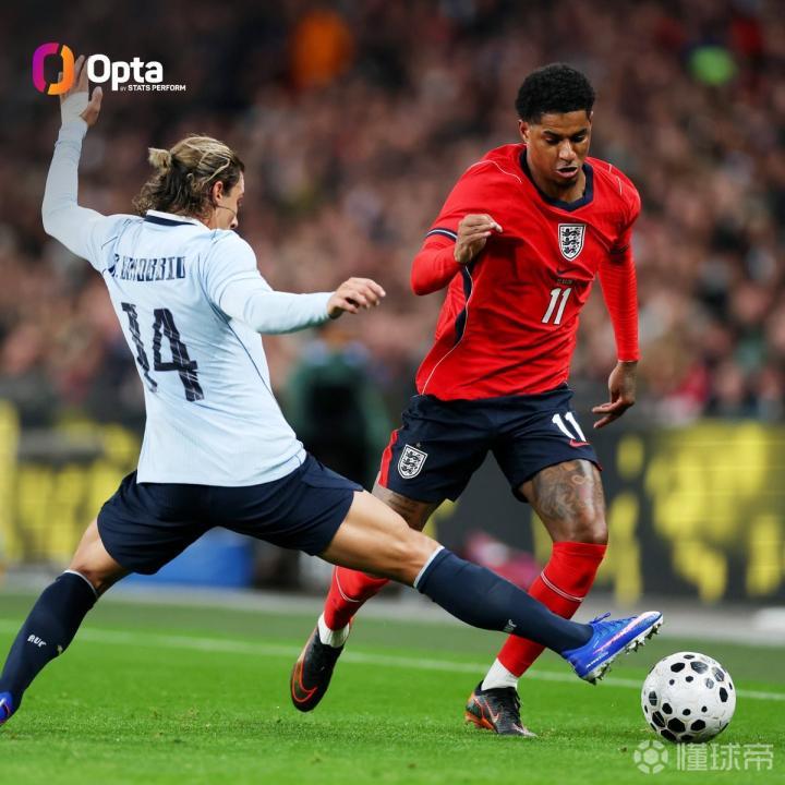 扫描下载懂球帝首页>动态> 本场完成6次过人,为拉什福德自2018年以来英格兰队单场最多