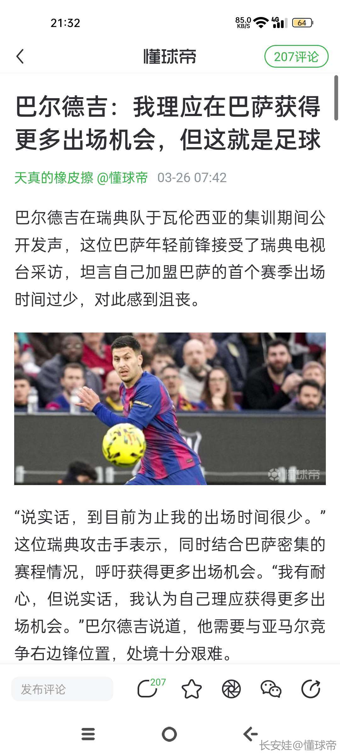 扫描下载懂球帝首页>动态> 阿斯:拉菲尼亚受伤,巴尔德吉或将迎来期盼已久的机会