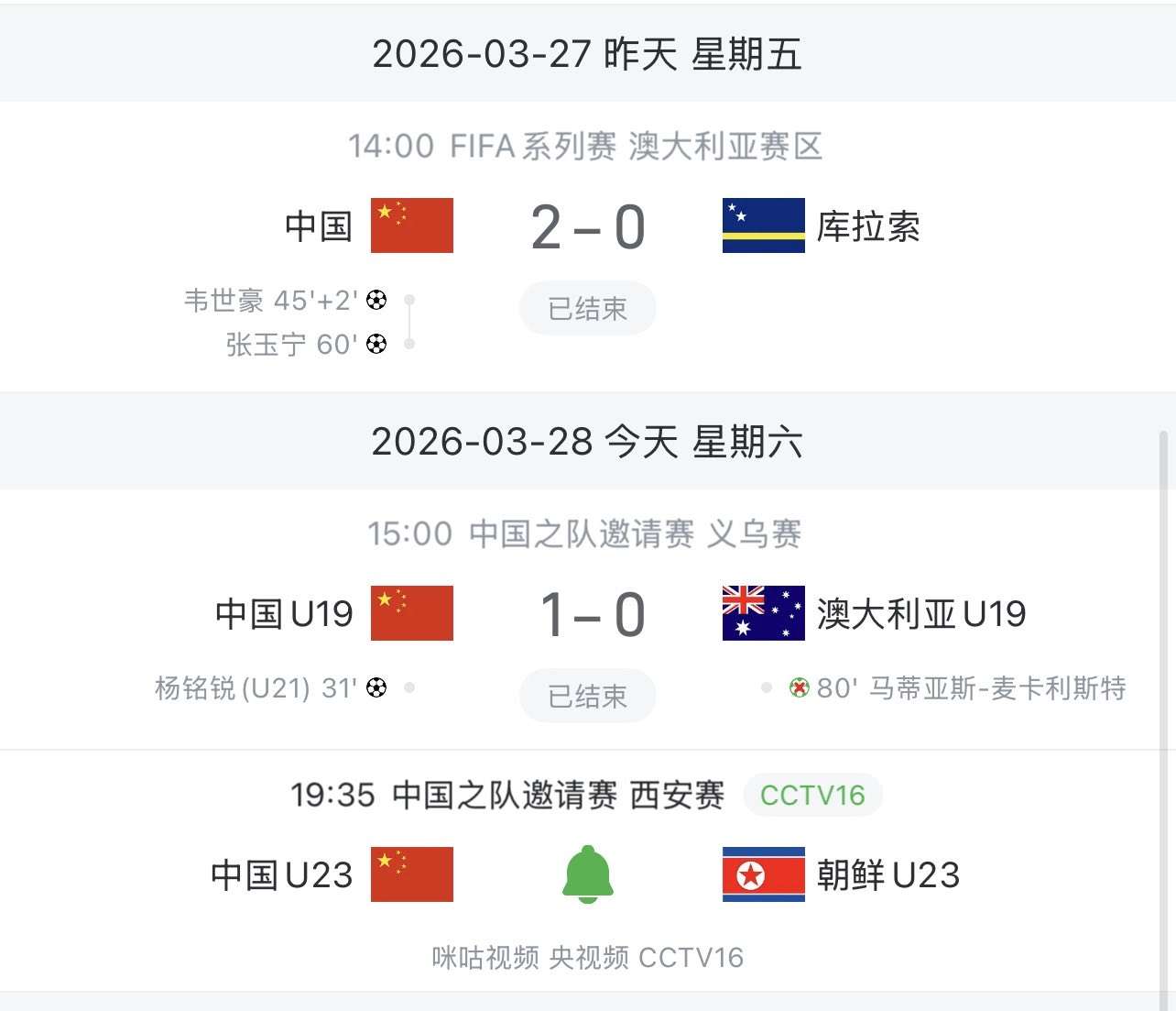 03-28 21:32对阵库拉索,4名此前参加U23亚洲杯的U23国脚代表国足首发