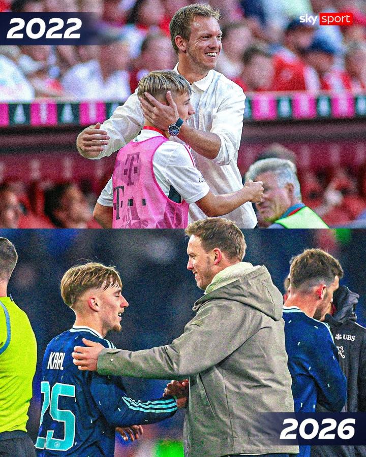 扫描下载懂球帝首页>动态> 缘分续写,卡尔四年前曾作为拜仁球童与纳格尔斯曼拥抱