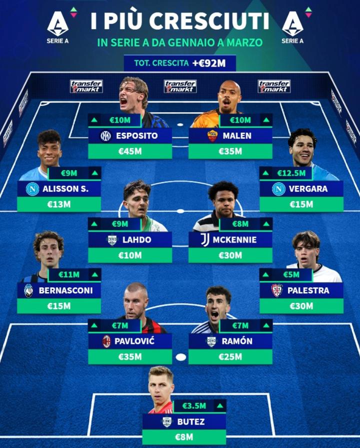 扫描下载懂球帝首页>动态> 德转列意甲身价涨幅最佳11人:皮奥领衔,马伦、麦肯尼在列