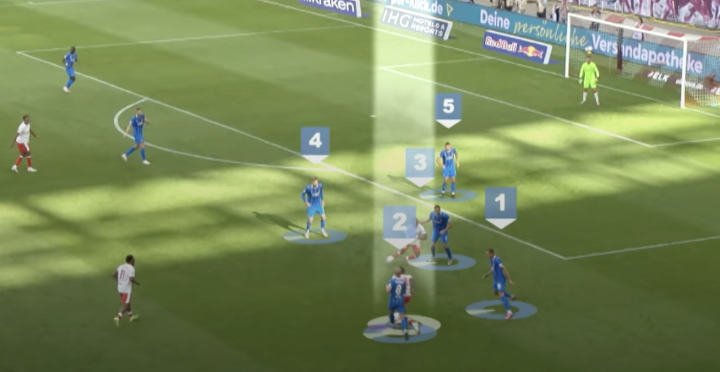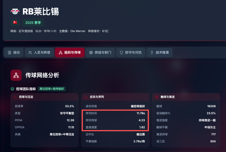 而在战术适配性方面,莱比锡其实同样也是打中路的层层推进的: