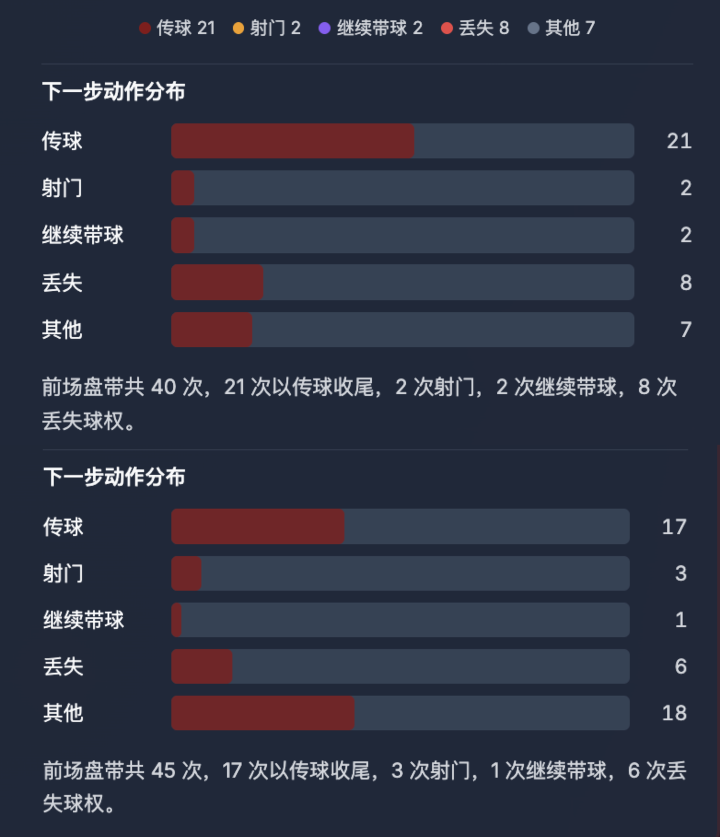 以及,其高速人球结合当中会稍微有点不自信,习惯主动降速来进行更精细化地控球,长距离推进是短板。