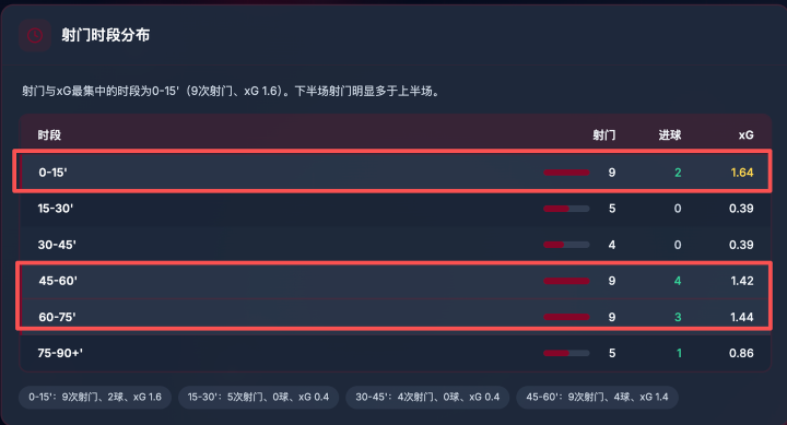 他的进球和射门时间段,主要是分布在一开场,和利物浦整体慢热的风格截然不同,他进入竞技状态的速度很快,一般情况下都是从走出球员通道之后先拔头筹的那个。