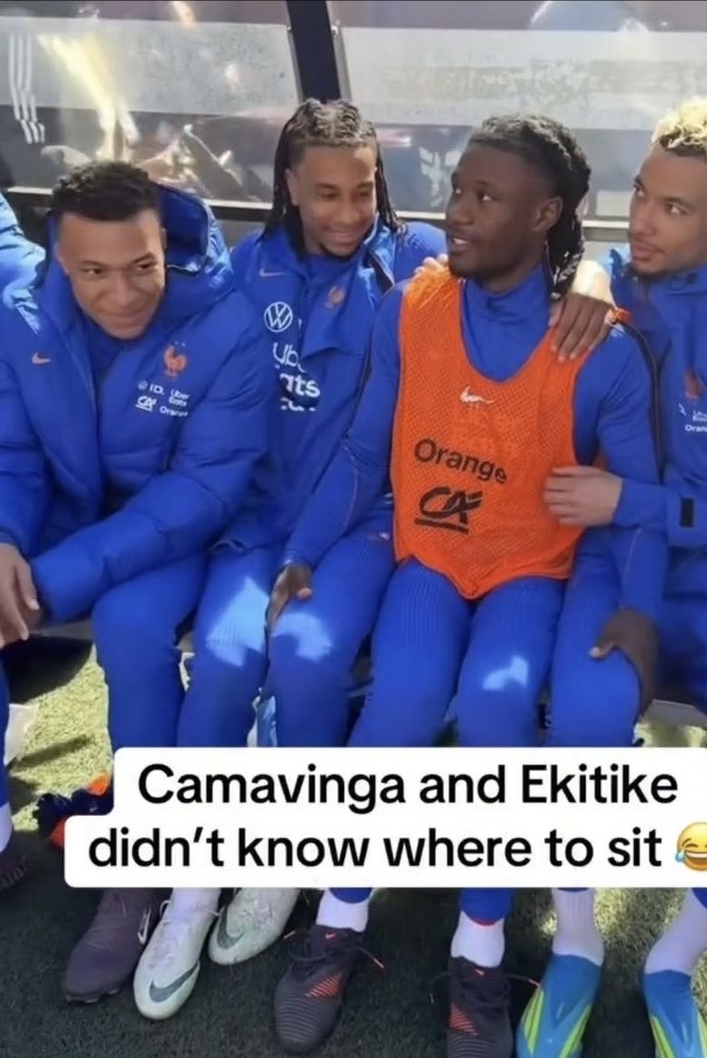 法国队板凳趣闻:铁棍卡马抢椅子,姆巴佩奥利塞开怀大笑