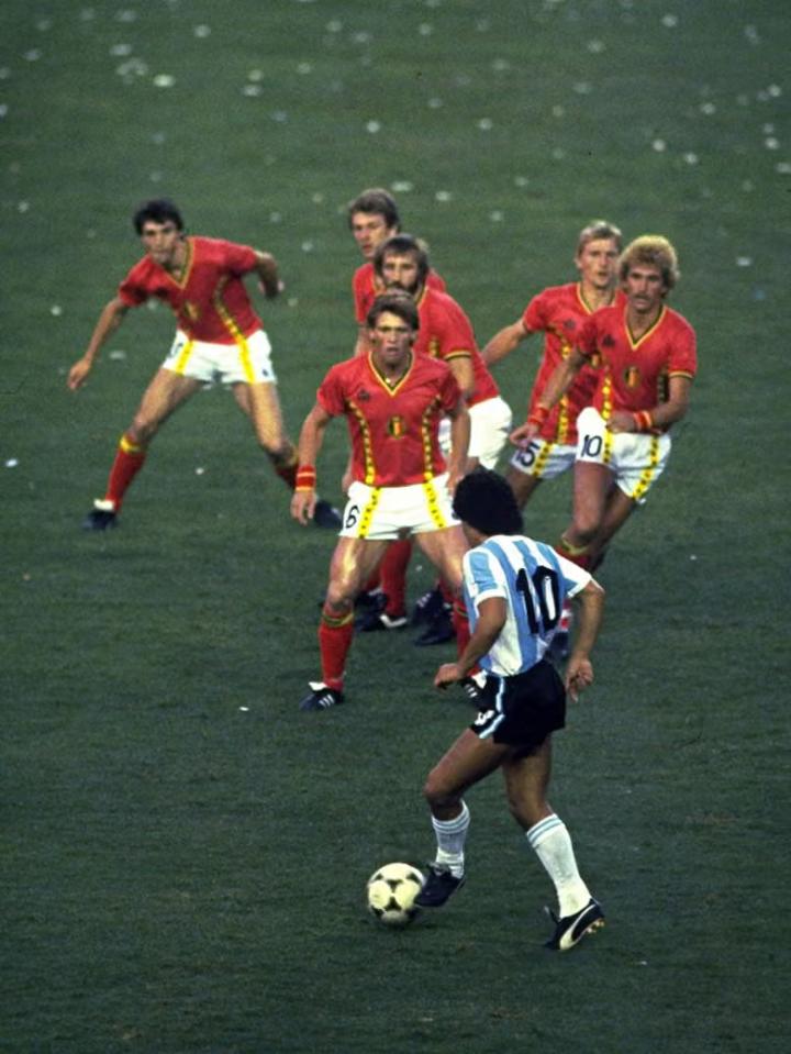 这场比赛里,摄影师史蒂夫-鲍威尔拍下了一张图片,被认为是史上最经典的足球题材摄影作品之一:马拉多纳左脚带球,一共6名比利时球员站在他身前,警惕地望着他。这张图片不仅表现出了那场比赛比利时队对马拉多纳的严密防守,也表现出了马拉多纳对对手的威慑和他自身超强的个人能力。