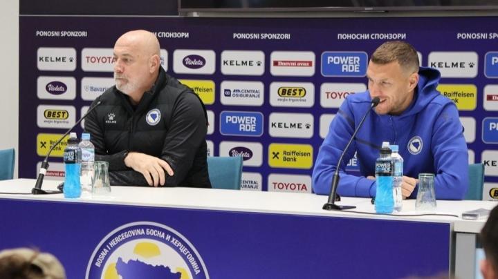 当地时间3月31日,波黑国家足球队将在比利诺波利耶迎战意大利,进行世界杯欧洲区附加赛决赛。在赛前的新闻发布会上,主教练巴巴雷茨和队长埃丁-哲科出席并回答记者提问。