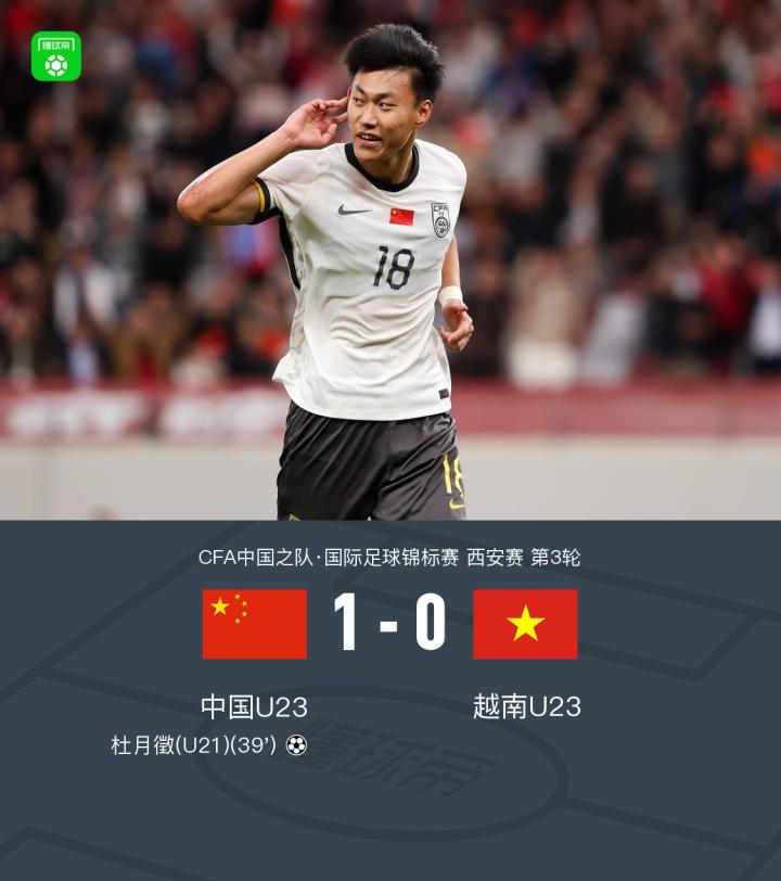 扫描下载懂球帝首页>动态> U23国足1-0越南U23获西安邀请赛亚军,杜月徵天外飞仙制胜